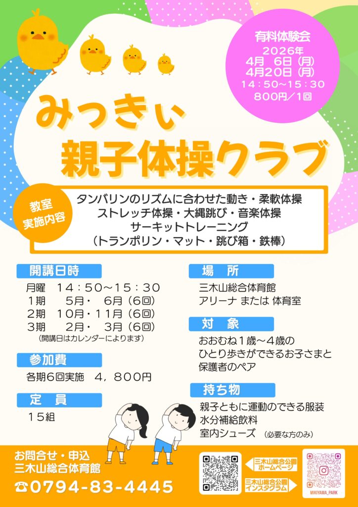 2026年度4月より「みっきぃ親子体操クラブ」を開講します🐣
